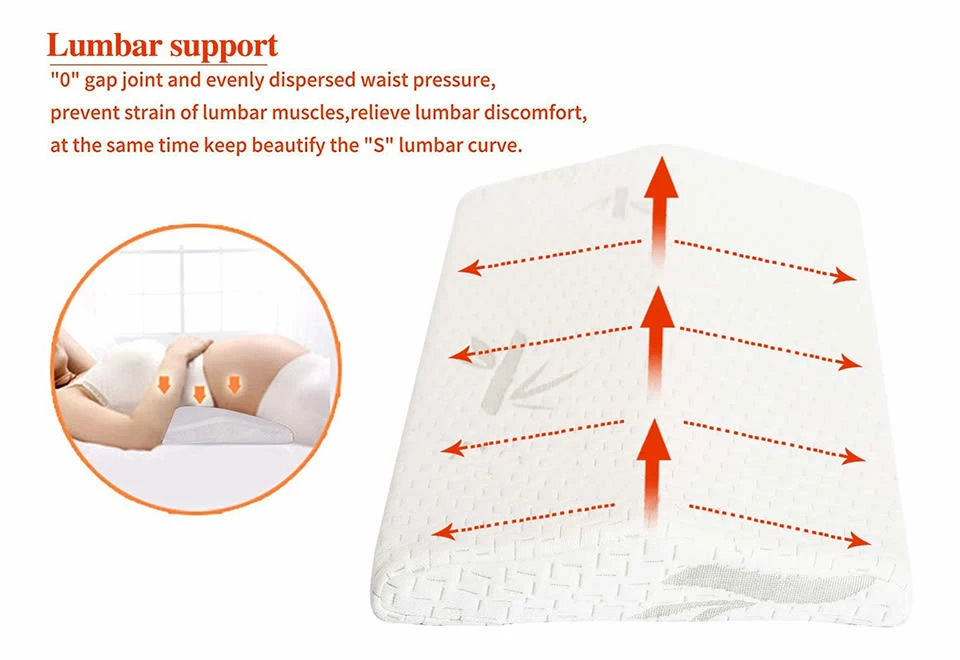 The Back Pain Relieving Pillow provides lumbar support with zero gap joint and evenly dispersed pressure at the waist to help eliminate lower back pain.
