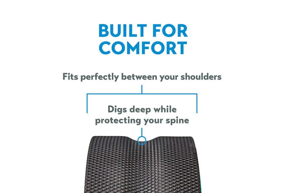 • Built-in “spinal canal” allows for increased muscle massage