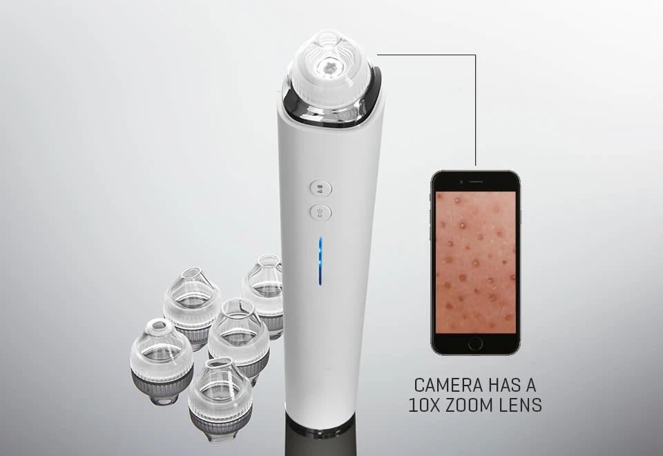 The Blackhead Camera and Vacuum has a 10X zoom lens to help you find and clean clogged pores with precision.