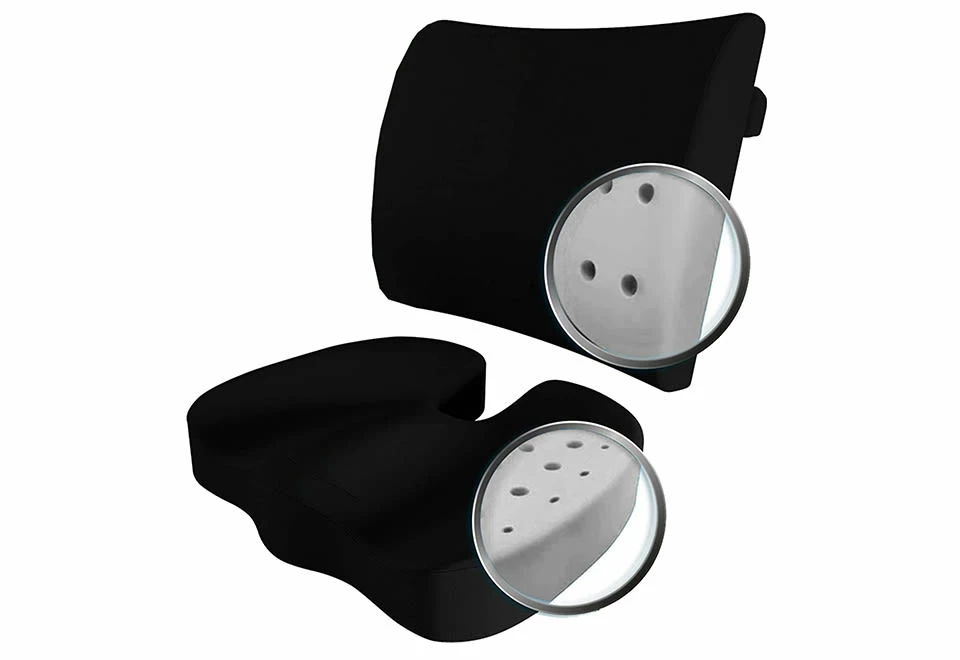 The Comfort Office Chair Cushion Set is the two-piece solution for office workers, gamers and anyone who sits for long periods of time.