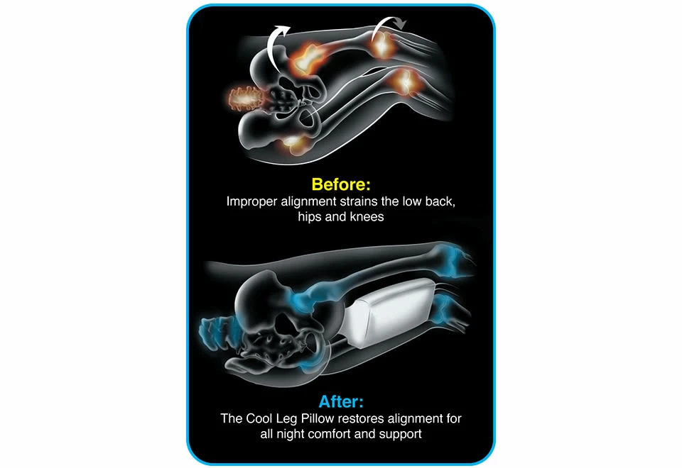 The Cooling Foam Leg Pillow is the ultimate alignment pillow for side sleepers. It features a dual-layer design that keeps your body cool as it aligns the back and hips.