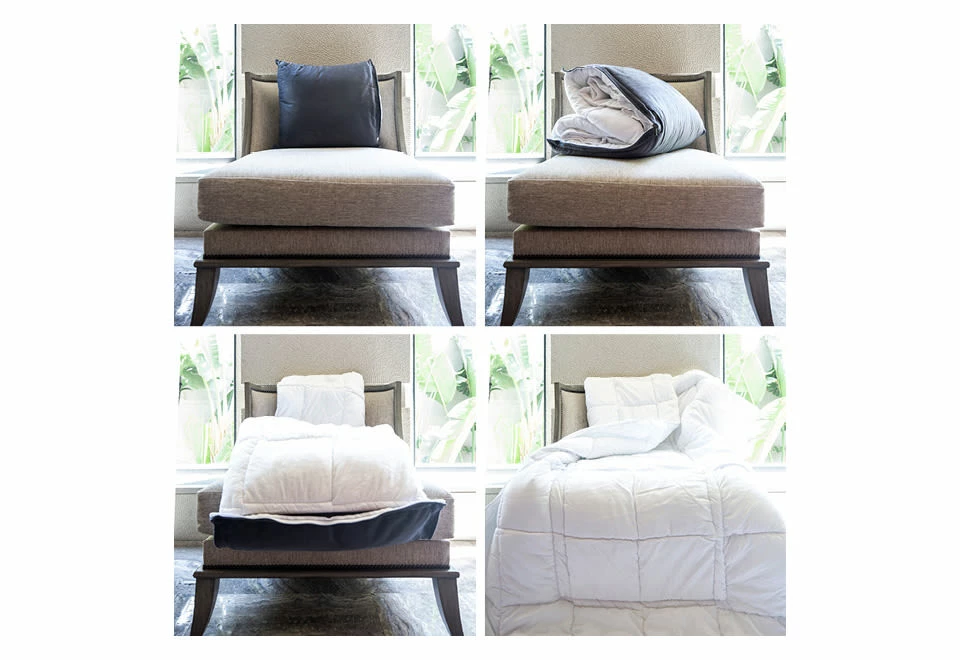 The Cushion Quilt is the easy way to have a cleaner, neater and more comfortable living space. This supersoft 18” decorative pillow unzips to become a full-sized quilted comforter blanket. Made from high-quality Turkish fabrics, it’s perfect for lounging, yet elegant enough to complement any decor. Ideal for couch, bed, chair, daybed, dorm, RV or boat. Machine washable for easy cleaning.