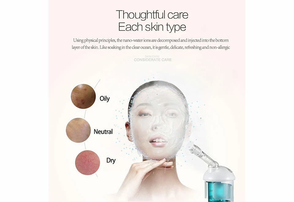 The Hair and Facial Steamer produces ultrafine nano ionic steam to moisturize and hydrate the hair and face.