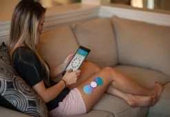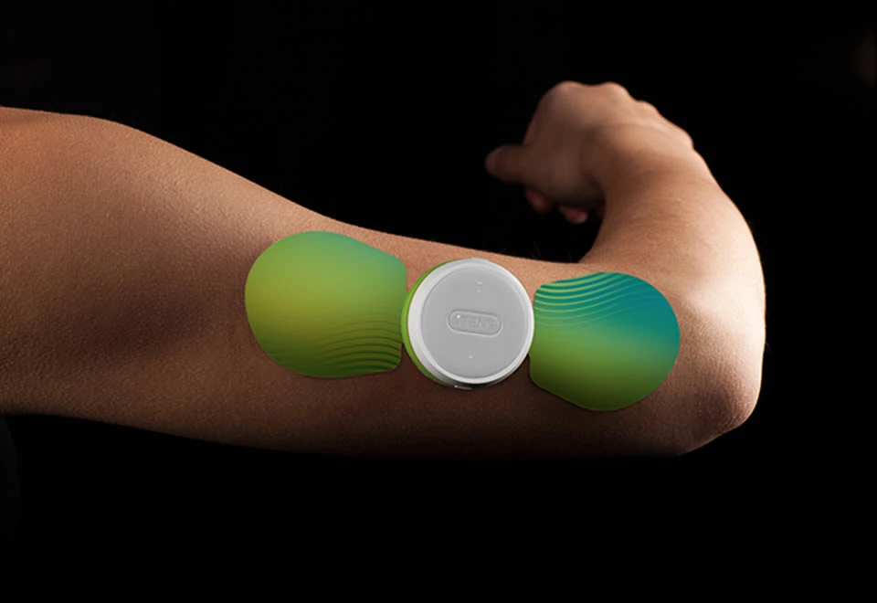Treat your sore muscles to the power of T.E.N.S. The iTens Wearable Electrotherapy device is thin and wireless, so you can use it under your clothes!