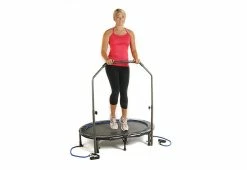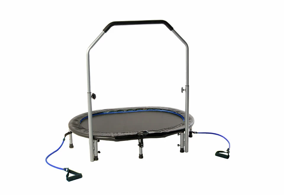 • Oval rebounding surface offers more stability and more exercise options vs. circular trampolines