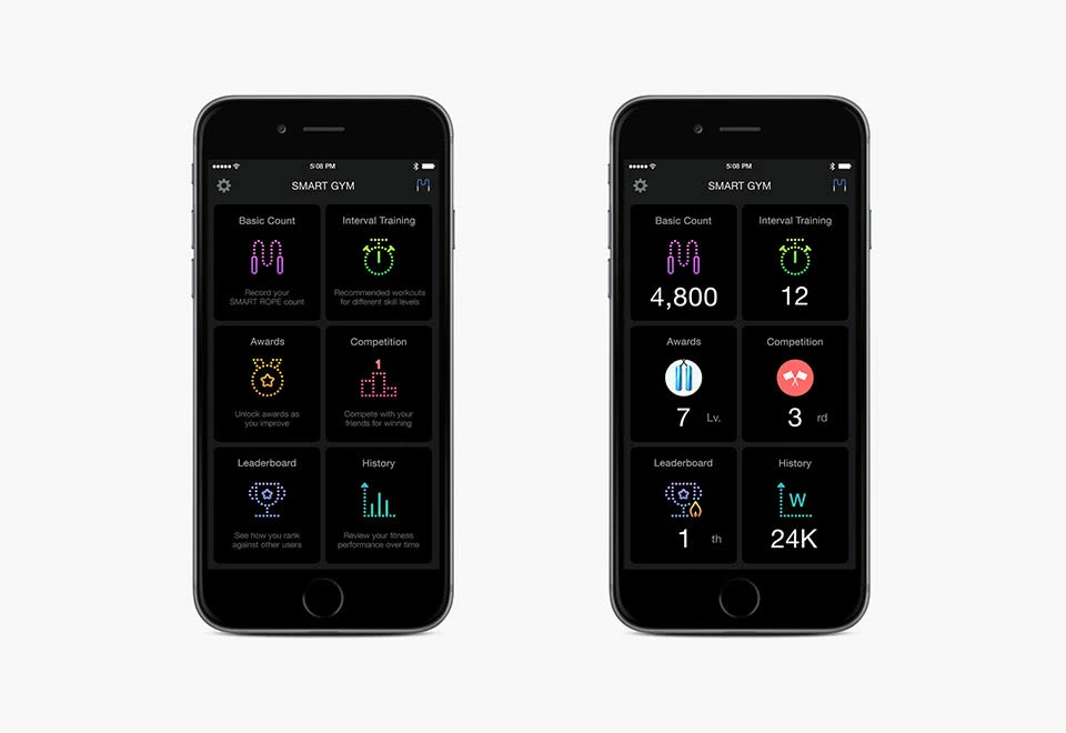 • LED-embedded jump rope that tracks fitness data in mid-air as you work out